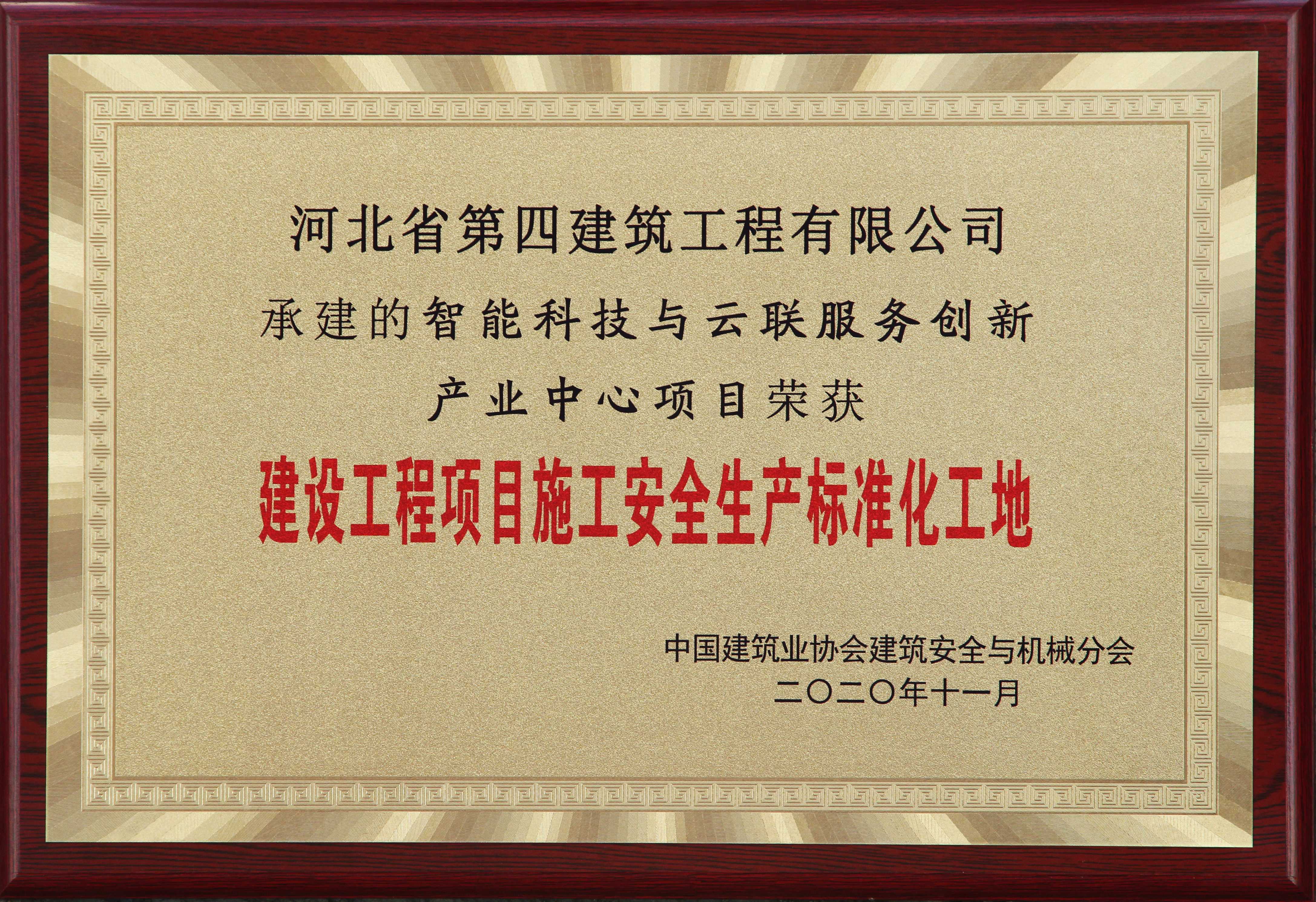 2020年12月23日,中国建筑业协会安全与机械分会在北京召开了建筑业安全生产管理经验交流会。会上表彰了全国建设工程项目施工安全生产标准化工地,公司承建的廊坊智能科技与云联服务创新产业中心工程获此荣誉。这是既2019年河间项目之后,公司再次获得该荣誉。